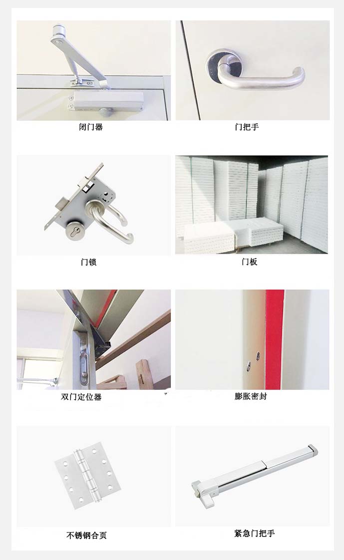 | 門扇 | 45毫米厚度,1.0mm鍍鋅鋼鋼 填充料:珍珠巖板 |