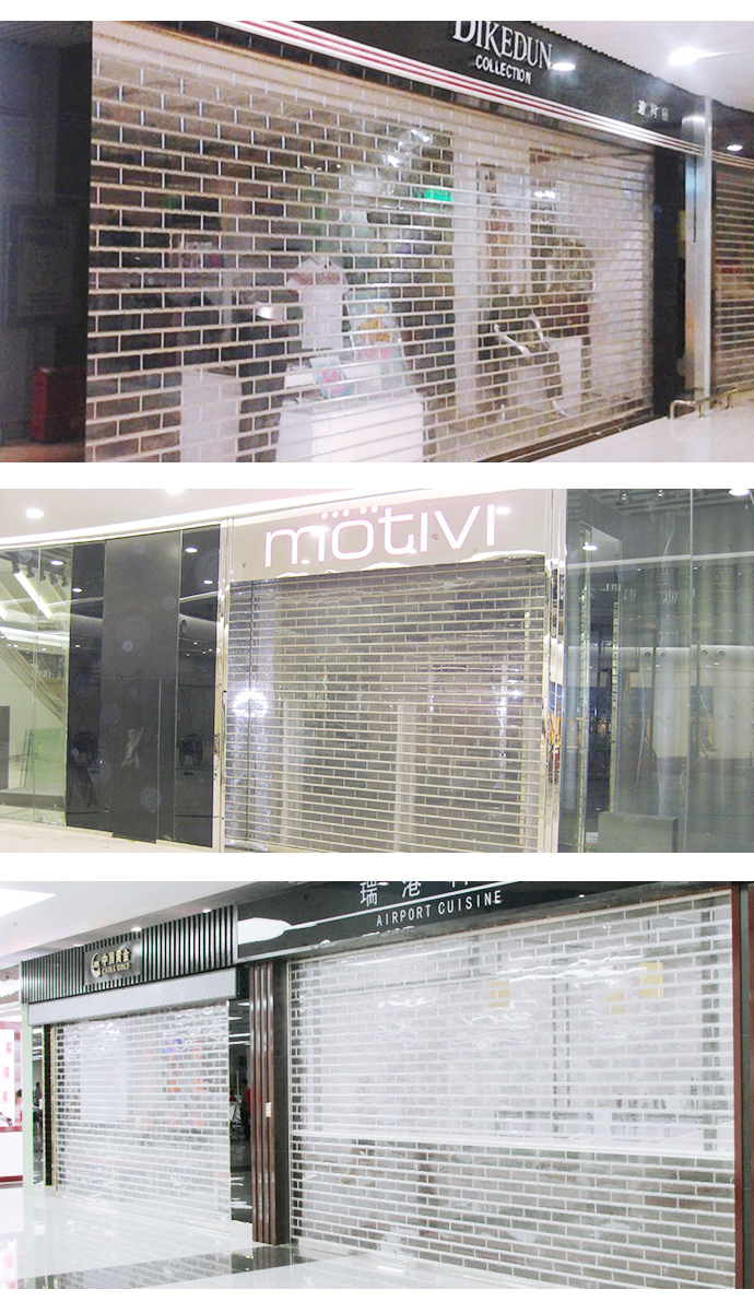 水晶卷簾門具有透明,防盜,抗雨,隔塵防塵等優點。水晶卷簾門在商業街區廣泛使用,成為傳統卷簾門的新的替代品,也適用于需要較高能見度的內部開啟門,門關閉后能大大降低噪音,提供安靜的作業環境,水晶卷簾門的透明性又可提供很好的能見度,使工作環境更加安全可靠。水晶卷簾門是銀行,電信,地鐵站,時裝專賣店及別墅陽臺等以追求安全,典雅,氣派場所的理想之選。